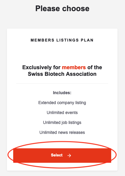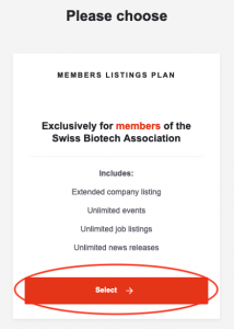 As a Swiss Biotech Association member, you profit from unlimited news listings for free. Click «Select».