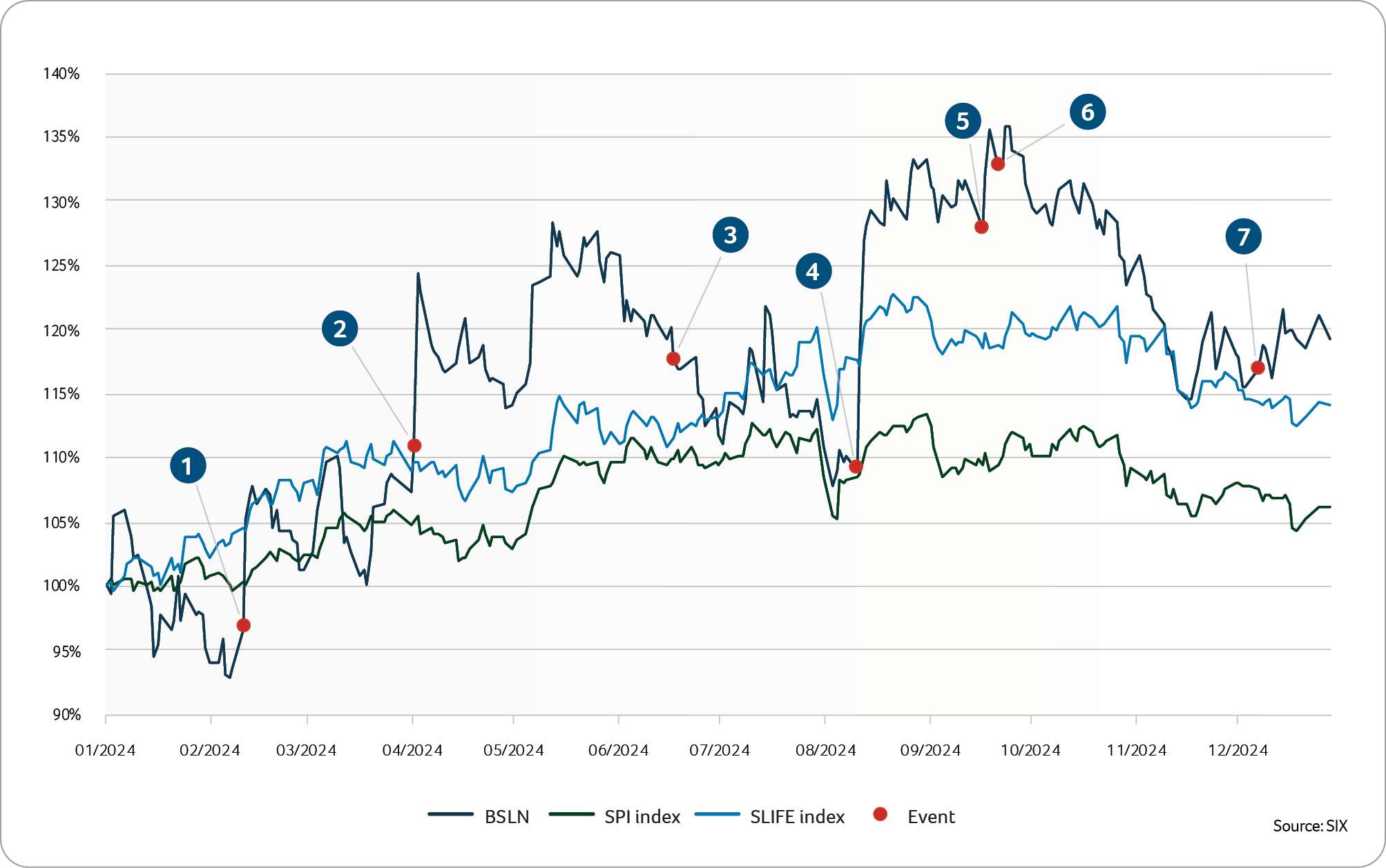Figure 1: Positive news flow during 2024 drove Basilea’s share price performance